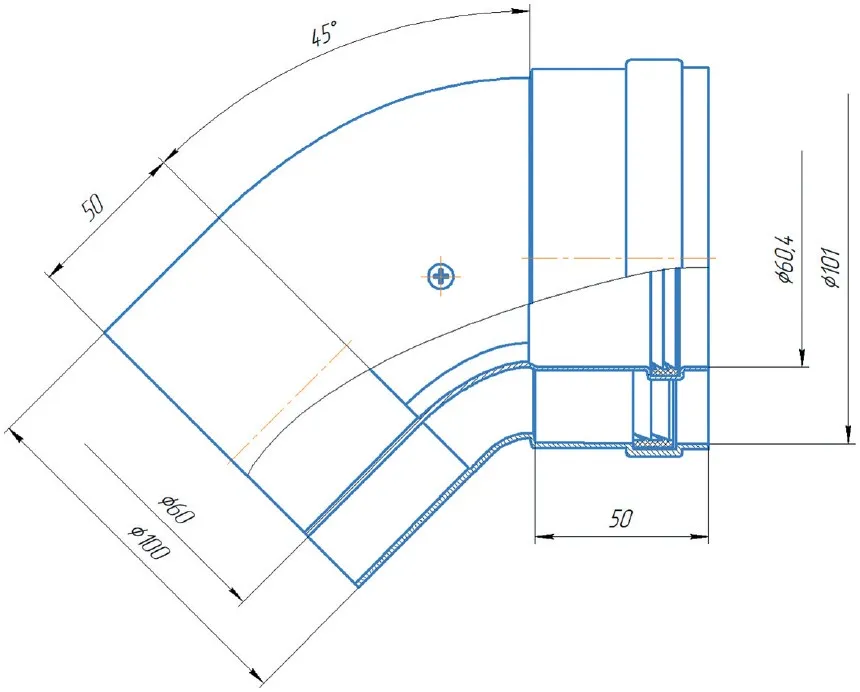 Колено для дымохода Ø 60/100мм ∠ 45° (Al) Krats CW-45-01