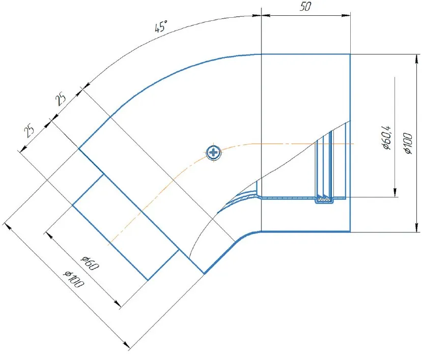 Колено для дымохода Ø 60/100мм ∠ 45° (Al) Krats PK-45