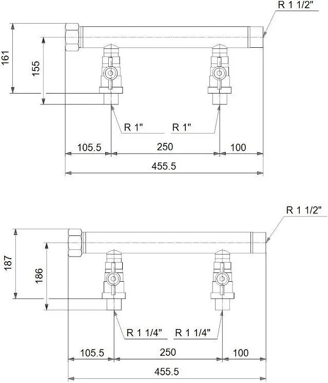 Характеристики товара Коллектор напорный и всасывающий для установок Grundfos CMBE TWIN 1" 99229422