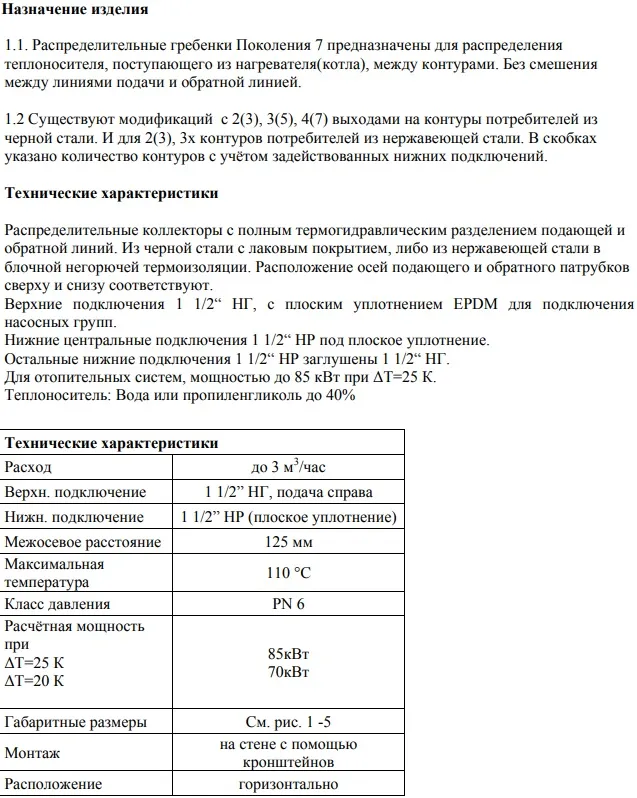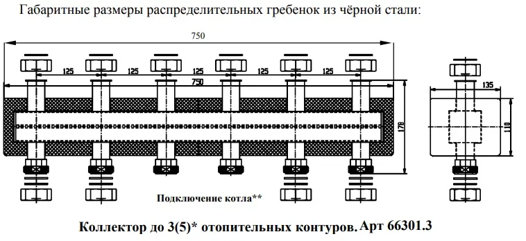 Межосевое расстояние контуров коллектора125 мм