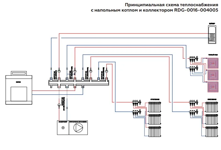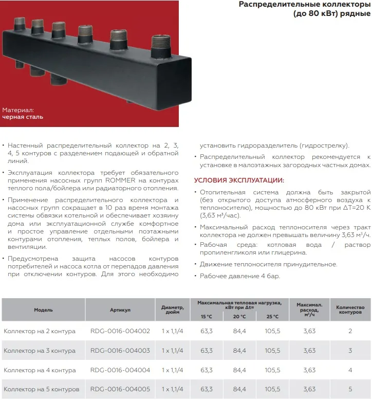 Характеристики товара Коллектор распределительный 5 контуров 1¼"н x 1"н Rommer RDG-0016-004005