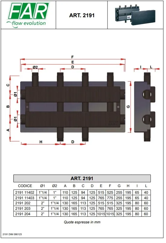 Характеристики товара Коллектор распределительный 5 контуров 2"в x 1¼"н Far FK 2191 204