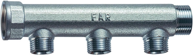 Характеристики товара Коллектор распределительный проходной 3 отвода 1¼"в/н x ¾"ек Far FK 3675 11434