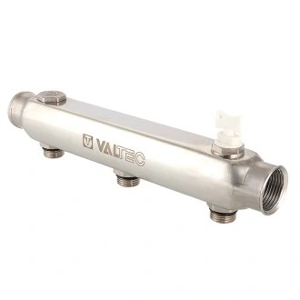 Характеристики товара Коллектор распределительный проходной 8 отводов 1"в/в x ½"н Valtec VTc.510.SS.060408