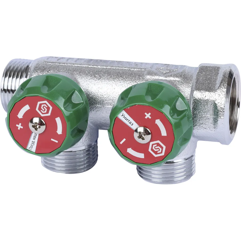 Характеристики товара Коллектор регулирующий проходной 2 отвода ¾"в/н x ¾"ек Stout SMB-6850-343402