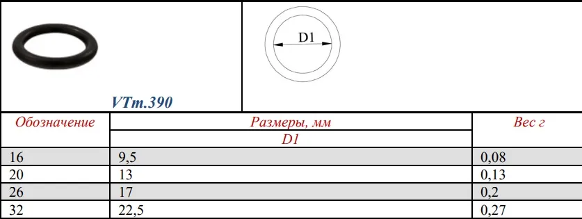 Характеристики товара Кольцо уплотнительное 20мм Valtec VTm.390.0.000020