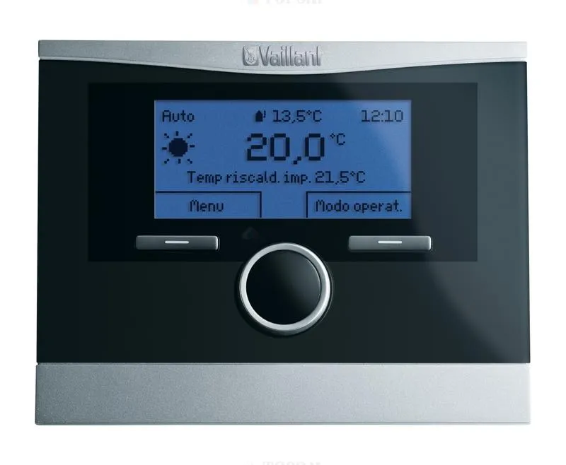 По-другому - термостат – позволяет пользователю самостоятельно управлять работой котла исходя из температуры в помещении. Котел может располагаться в другой части дома: на другом этаже или даже в подвале. Некоторые комнатные регуляторы оснащены функцией, позволяющей запрограммировать температурный режим на неделю, например, снижать температуру в помещении в ночное время или поддерживают особо экономичные режимы работы: «Отпуск», «Вечеринка», «Встреча». Комнатные регуляторы Vaillant, оснащенные графическим дисплеем, отображают на своем экране не только температуру в помещении, но и состояние котла.