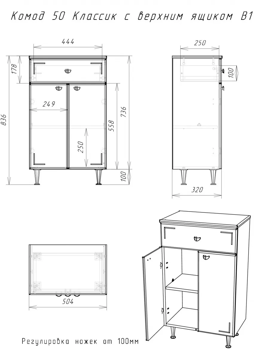 Характеристики товара Комод напольный Айсберг Классик 50 белый DA1002K