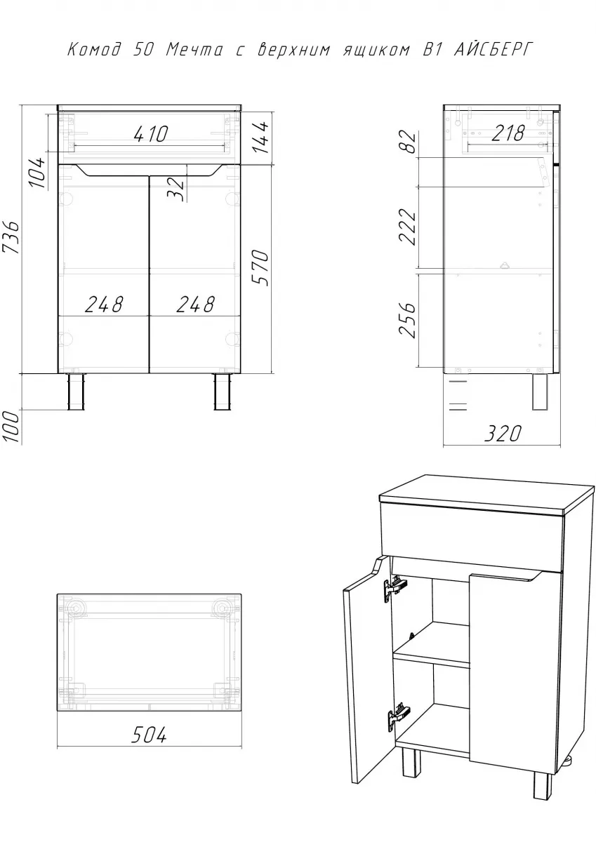 Характеристики товара Комод напольный Айсберг Мечта 50 белый DM2504K