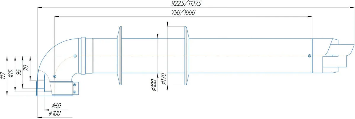 Комплект дымохода Ø 60/100мм L=1000мм Krats Стандарт KTS-01P-075