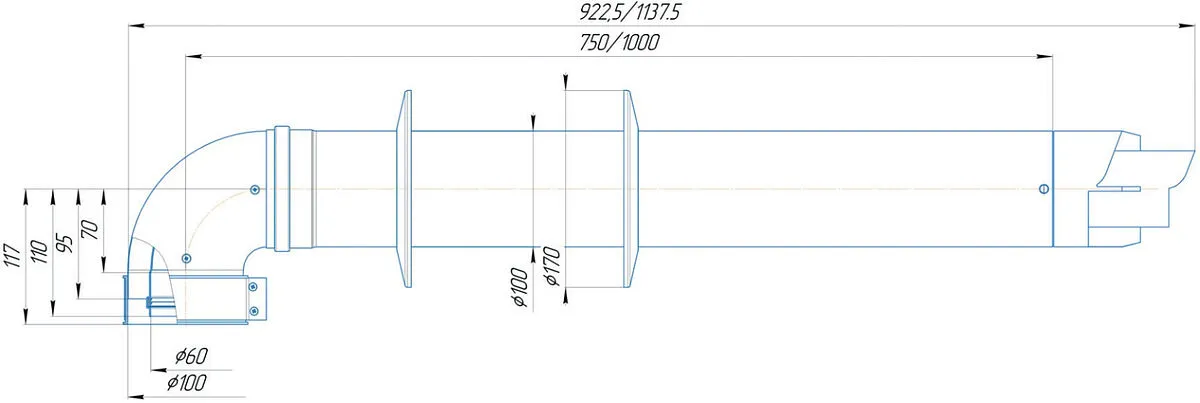 Комплект дымохода Ø 60/100мм L=1000мм Krats Стандарт KTS-01V-075