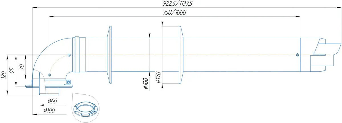Комплект дымохода Ø 60/100мм L=1000мм Krats Стандарт KTS-02FR-075