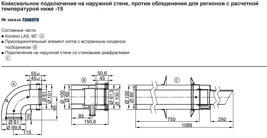 Комплект дымохода Ø 60/100мм L=1000мм Viessmann 7246579