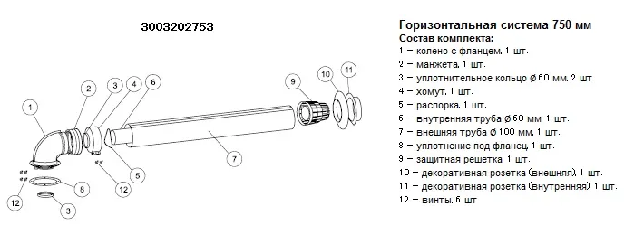 Комплект дымохода Ø 80/125мм L=750мм Protherm 3003202753