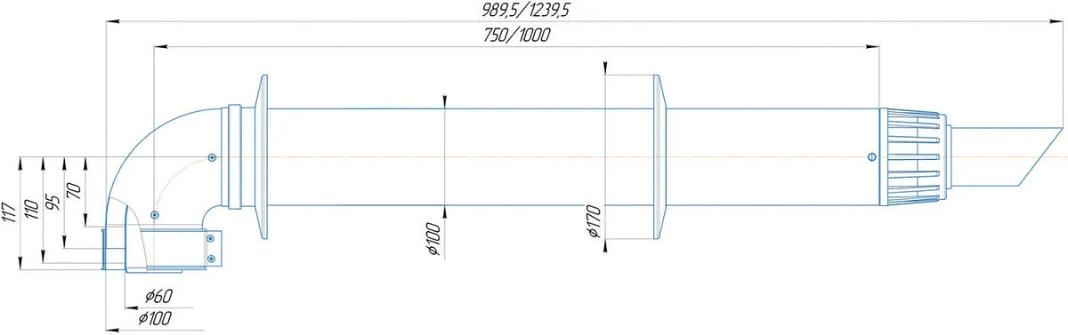 Комплект дымохода Антилед Ø 60/100мм L=1000мм Krats Антилёд KTL-01AR-075