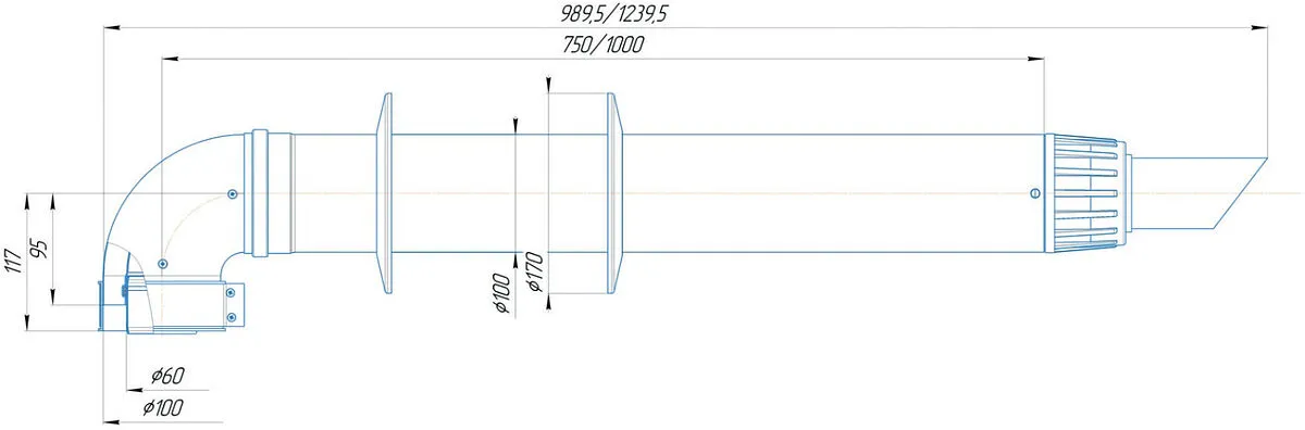 Комплект дымохода Антилед Ø 60/100мм L=1000мм Krats Антилёд KTL-01B-075