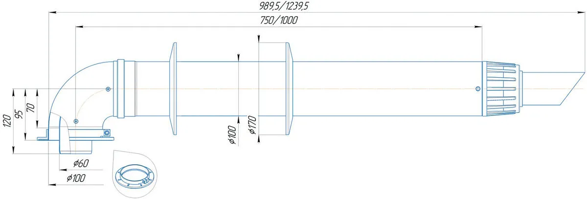 Комплект дымохода Антилед Ø 60/100мм L=1000мм Krats Антилёд KTL-02FR-1
