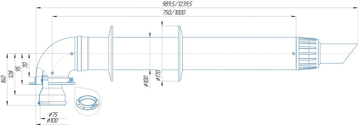 Комплект дымохода Антилед Ø 60/100мм L=1000мм Krats Антилёд KTL-02N-1
