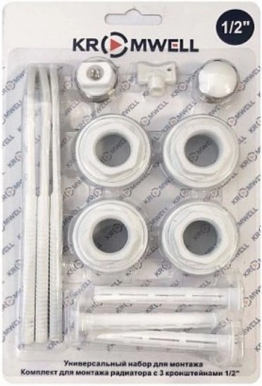 Комплект радиаторный универсальный ½" Euros белый 3 кронштейна EU.ST6134030 12_k