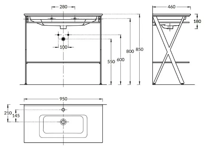 Характеристики товара Консоль с умывальником напольная Kerama Marazzi Piano Next 95 чёрный PIA.N.95\BLK+PI.wb.95