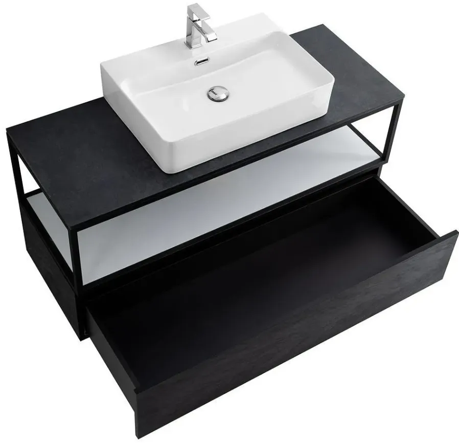 Консоль с умывальником подвесная Cezares Cadro 120 чёрный CADRO-120/46/30-1C-SO-MET-ST+