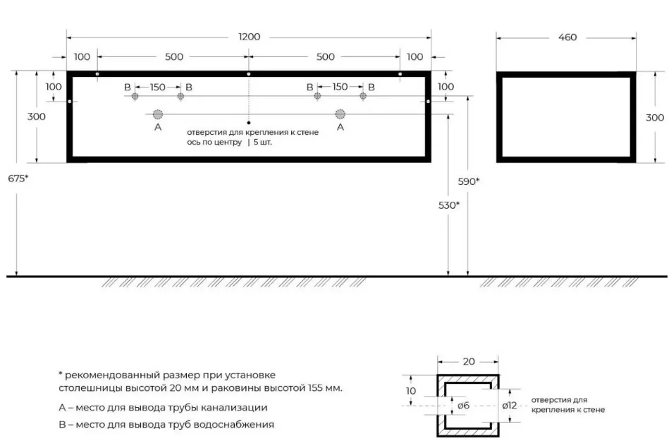 Характеристики товара Консоль с умывальником подвесная Cezares Cadro 120 чёрный CADRO-120/46/30-1C-SO-MET-ST+