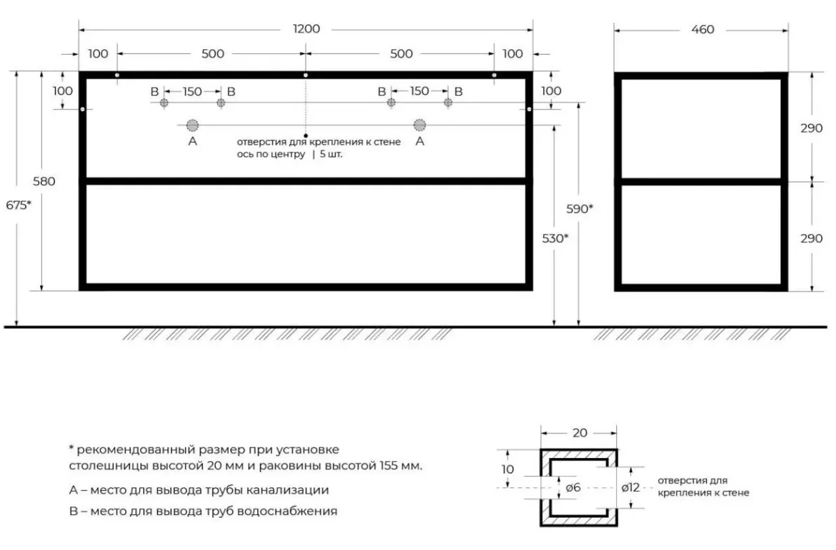 Характеристики товара Консоль с умывальником подвесная Cezares Cadro 120 чёрный CADRO-120/46/58-2C-SO-MET-ST+