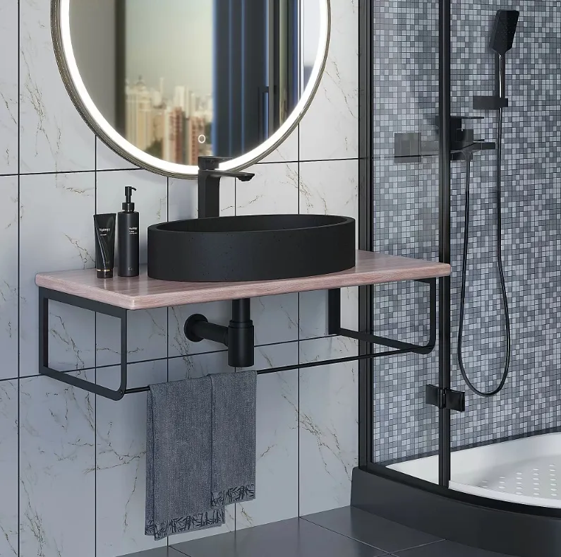 Консоль с умывальником подвесная Uperwood UPD Tanos 90 бук светлый/чёрный матовый 2910210407