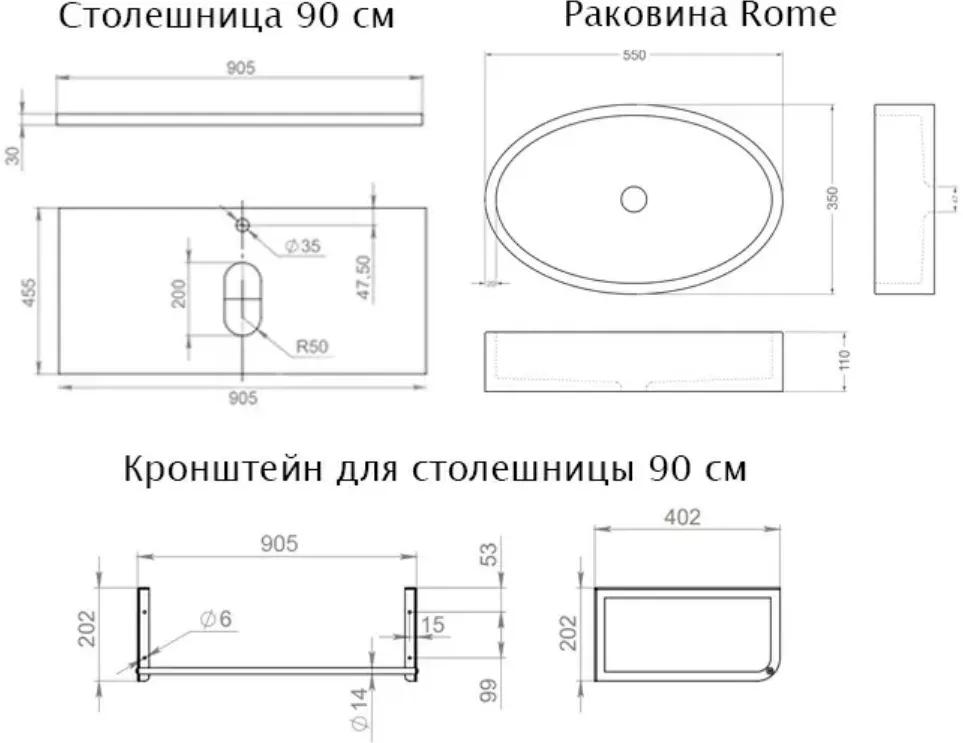 ДОПОЛНИТЕЛЬНАЯ ИНФОРМАЦИЯСтолешница Uperwood Tanos - 1шт., кронштейн, бетонная раковина Rome