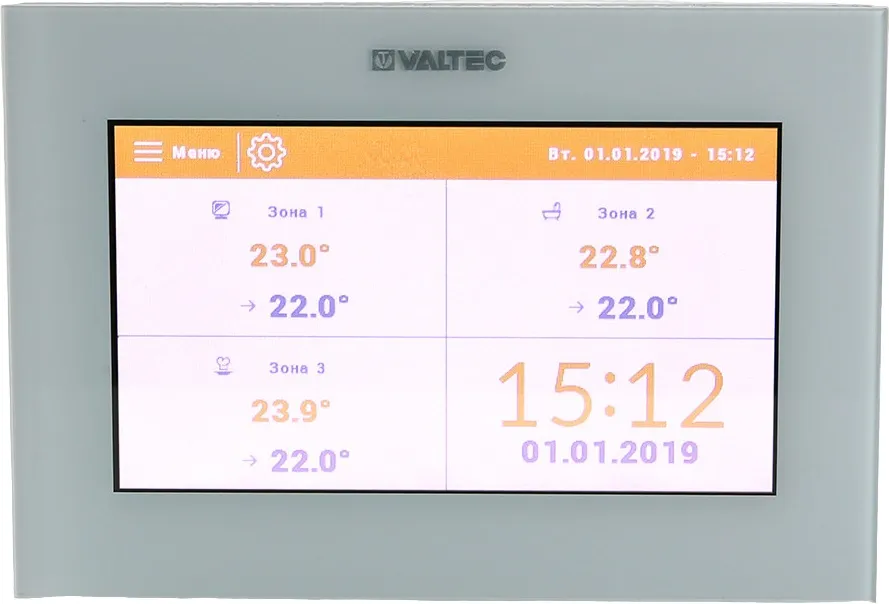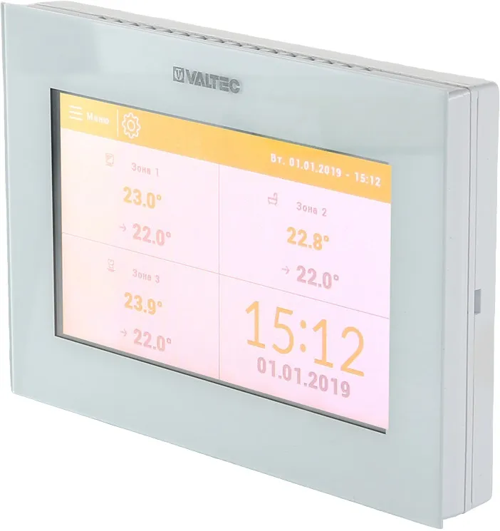 Панель отображает основные функции и настроечные параметры зонального контроллера на сенсорном ЖК-дисплее. Это дает возможность пользователю производить управление климатическими системами здания с одного компактного устройства.