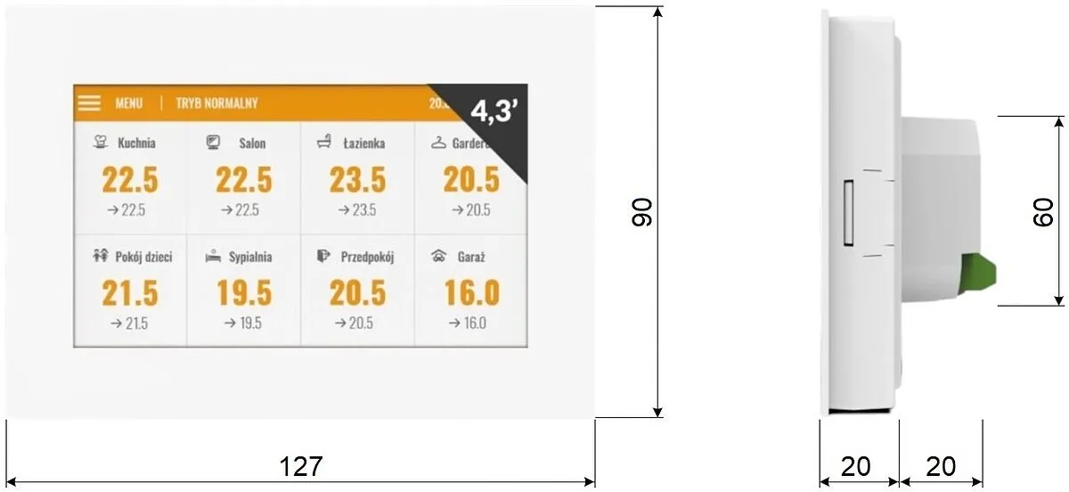 Панель имеет встроенный температурный датчик, что позволяет производить регулирование в собственной температурной зоне.
