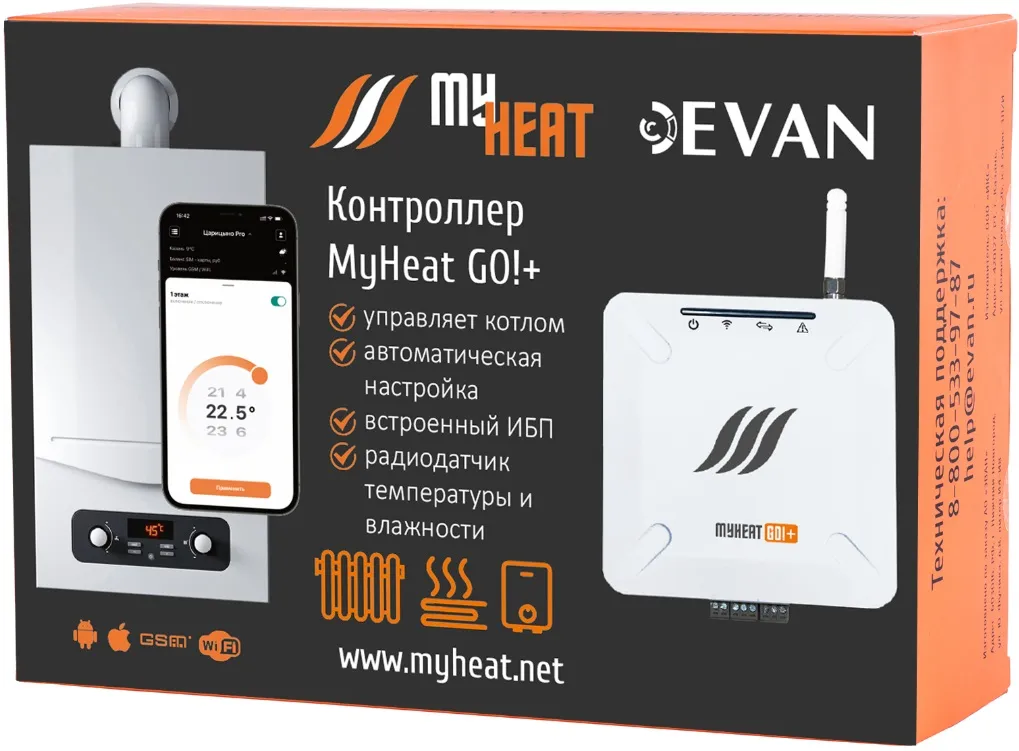 Контроллер MyHeat GO PLUS предназначен для управления котлами отопления в квартирах с индивидуальным отоплением и небольших частных домовладениях. Осуществляет управление отопительным котлом по цифровым шинам и в режиме термостата, бойлером косвенного нагрева, предоставляет возможность регулировать температурный режим одной зоны отопления. Позволяет управлять температурным режимом в зависимости от погодных условий, температуры наружного воздуха, настроенных сценариев и расписаний. Обеспечивает удаленный контроль параметров системы отопления, а также оповещение в случае возникновения ошибок. Любое другое применение данного контроллера считается использованием его не по назначению. Производитель, либо Поставщик, не несет ответственности за ущерб, возникший в результате некорректной работы, возникшей при использовании оборудования не по назначению, либо при несоблюдении правил и требований Паспорта или Инструкции по эксплуатации.