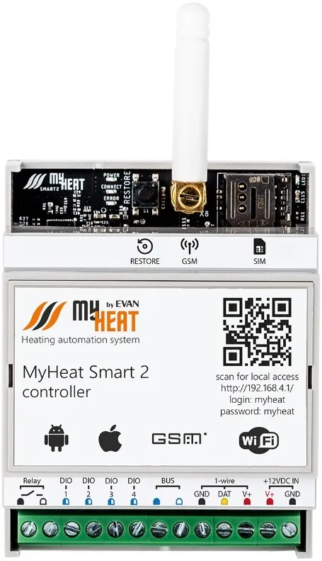 MyHeat SMART2 контролирует в удаленном режиме все параметры системы отопления, поддерживает SMS и Push оповещение при возникновении ошибок.