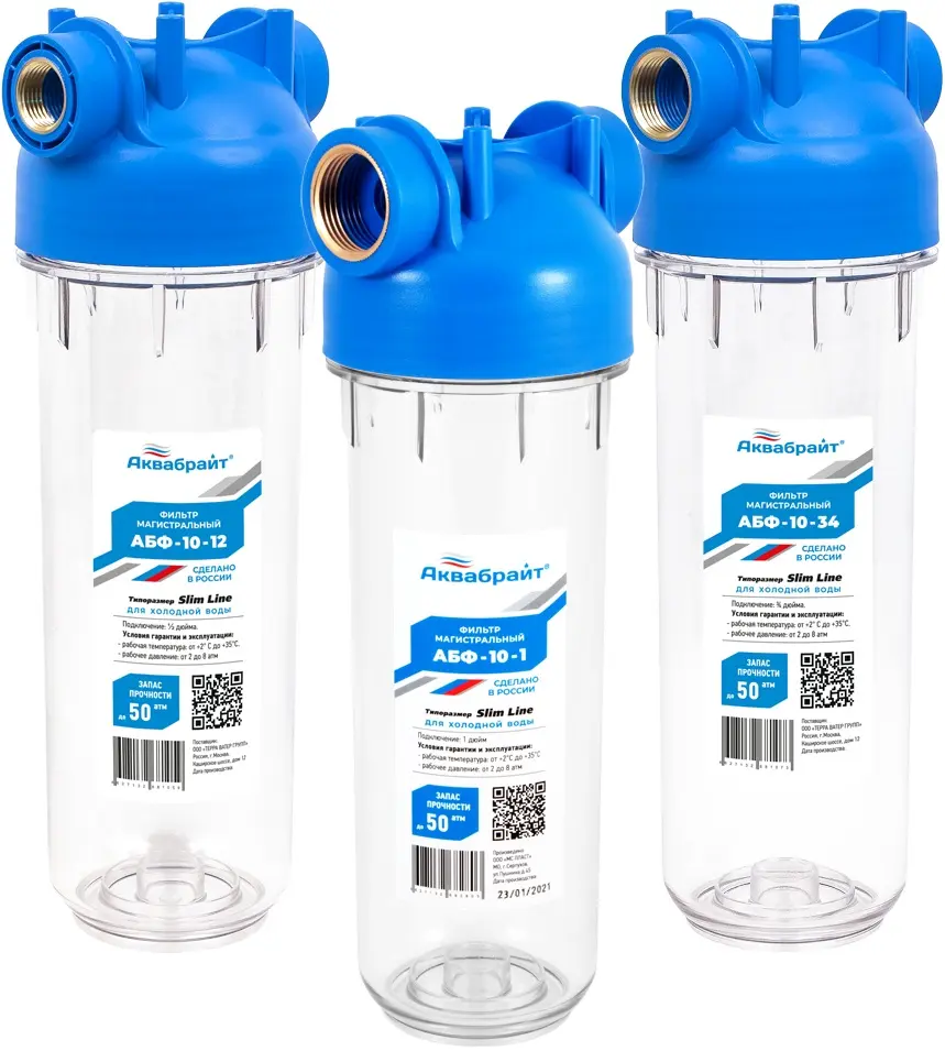 Характеристики товара Корпус фильтра 1"в x 1"в Slim Line 10" Аквабрайт АБФ-10-1