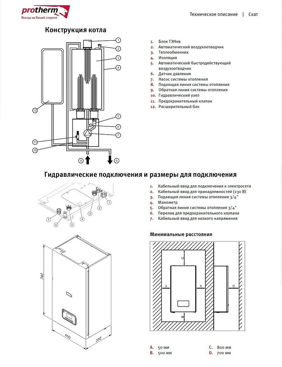Характеристики товара Котел электрический одноконтурный 12кВт Protherm Скат 12 KE /14 RU 0010023648
