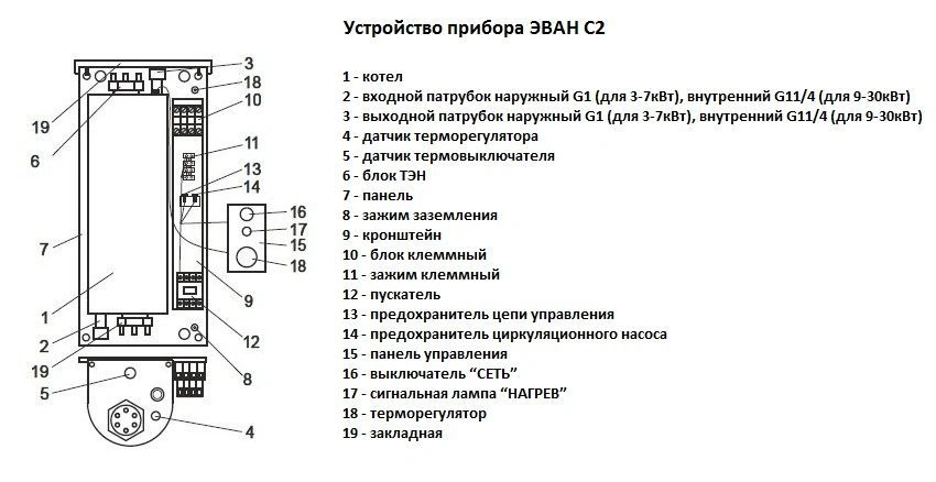 Характеристики товара Котел электрический одноконтурный 6кВт Эван С2 6 11915