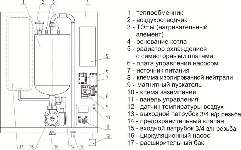 Характеристики товара Котел электрический одноконтурный 9кВт РЭКО 9ПМ