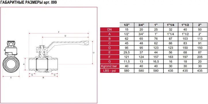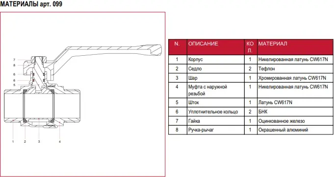 Характеристики товара Кран шаровый ¾"н x ¾"н Itap 0990034