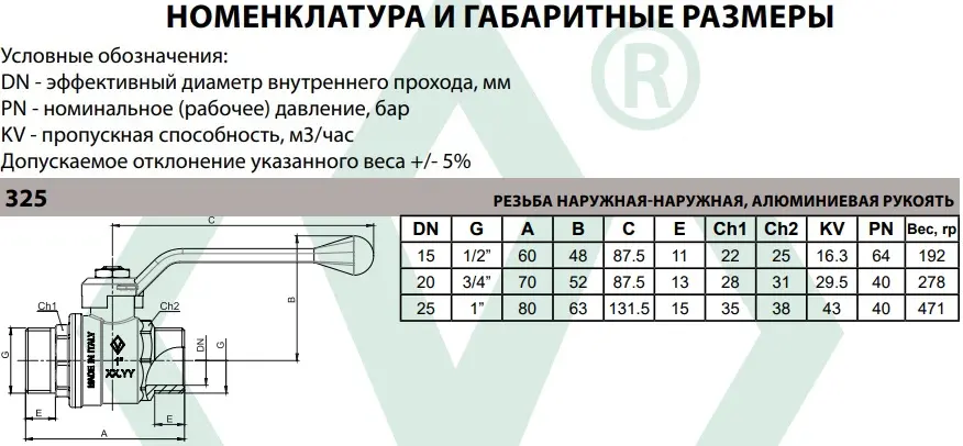 Характеристики товара Кран шаровый ¾"н x ¾"н Bugatti Oregon 03250024