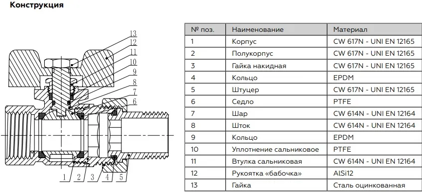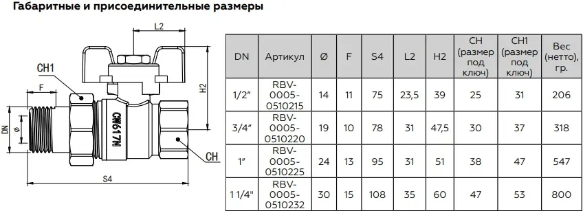 Характеристики товара Кран шаровый с американкой 1¼"в x 1¼"н Rommer RBV-0005-0510232