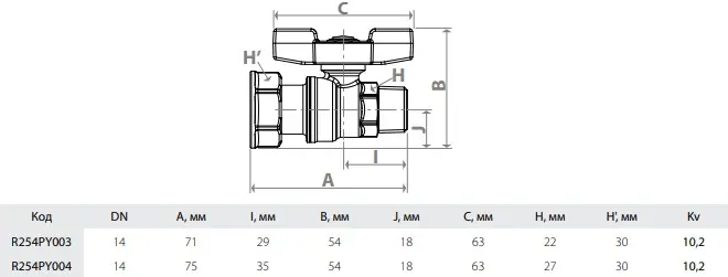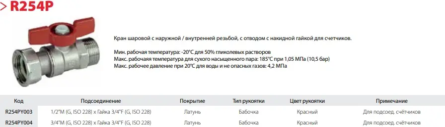 Характеристики товара Кран шаровый с накидной гайкой ½"н x ¾"нг Giacomini R254PY003