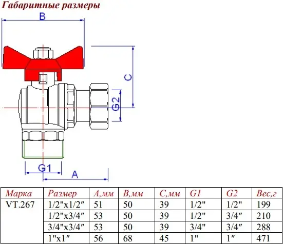 Характеристики товара Кран шаровый с накидной гайкой угловой 1"н x 1"нг Valtec Base VT.267.N.0606