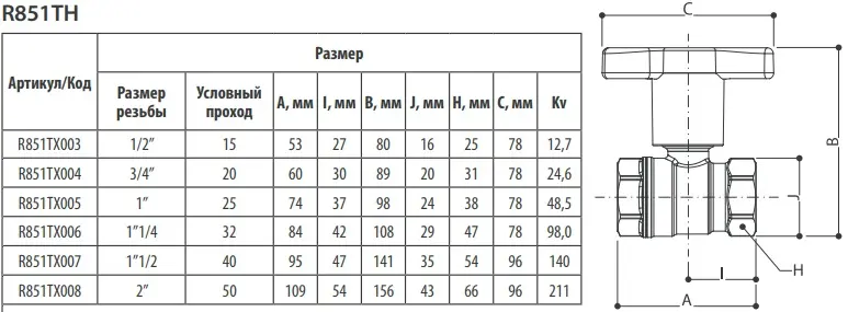 Характеристики товара Кран шаровый с удлиненной ручкой 1"в x 1"в Giacomini R851TX005
