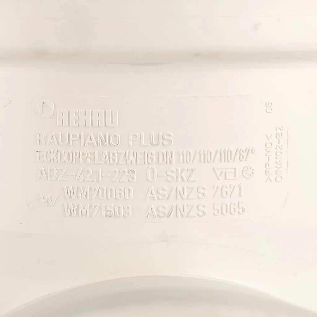 Характеристики товара Крестовина двухплоскостная внутренняя бесшумная D=110x110x110мм Угол 87° Rehau Raupiano Plus 11215641003