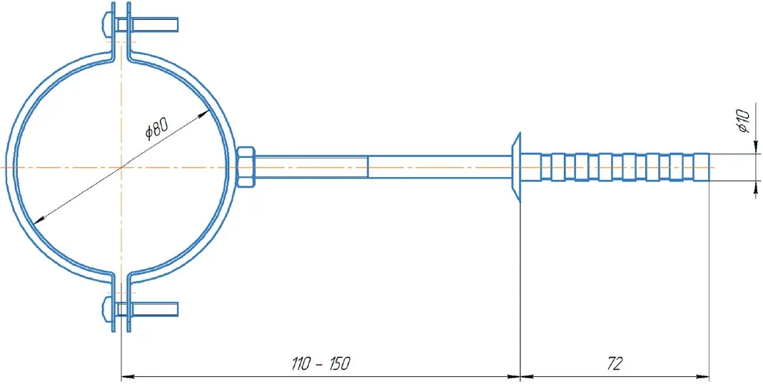 Характеристики товара Кронштейны Ø 100мм для крепления труб к стене Krats KS-100
