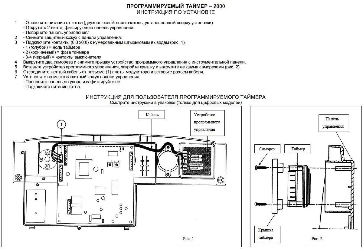 Механический программируемый таймер. Позволяет программировать время работы и выключения котла в течение дня. Устанавливается на передней панели котла