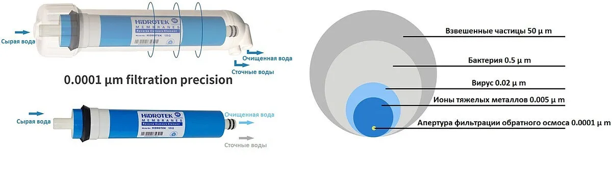 Материал фильтрующего элемента (1)полиамидная тонкопленочная обратноосмотическая мембрана