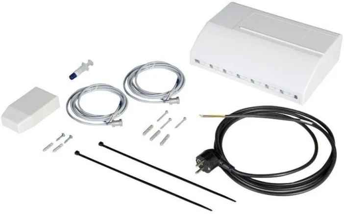 Этот модуль, подключенный к модулирующему термостату комнатной температуры, может управлять 2 дополнительными контурами. Каждый из этих 2 контуров может быть прямым, или смесительным контуром отопления или контуром ГВС.