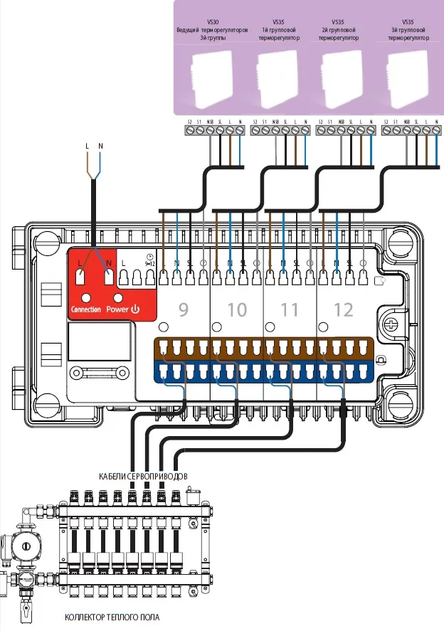 - возможность подключения до 6-ти термоэлектрических приводов на каждую зону отопления