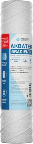 Характеристики товара Картридж для механической очистки воды Slim Line 10" Aquatech Gradient+ FCPP(G)10SL-C50M
